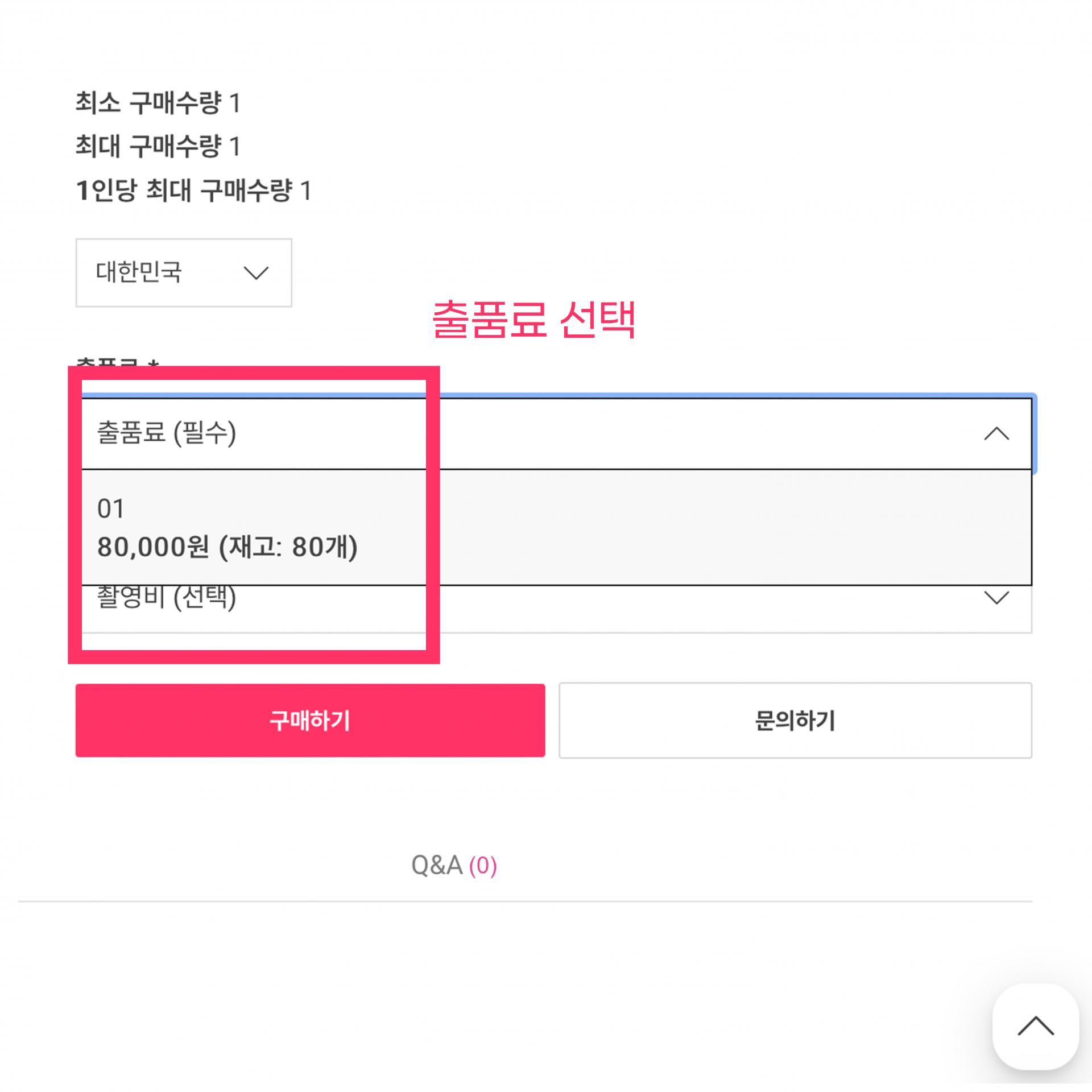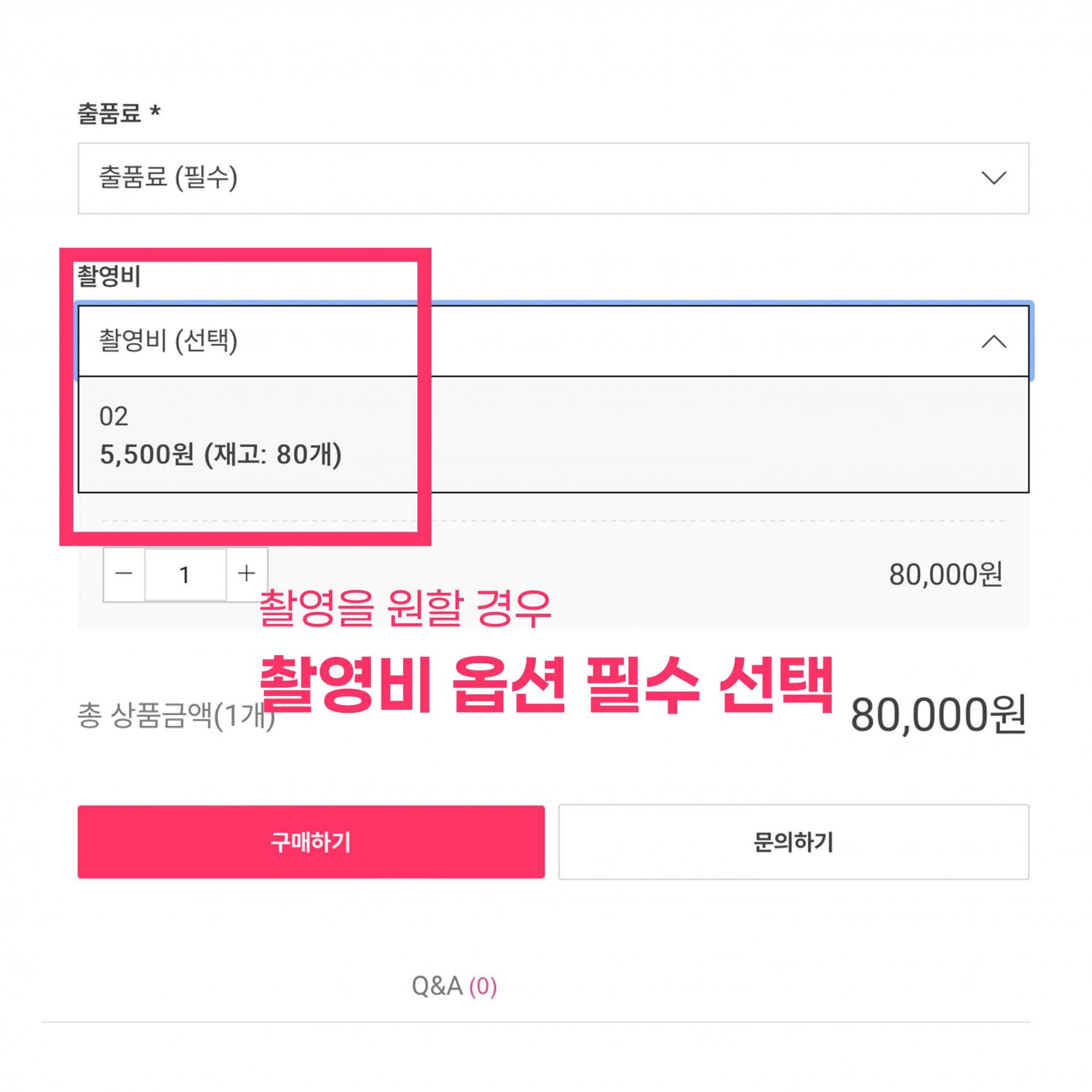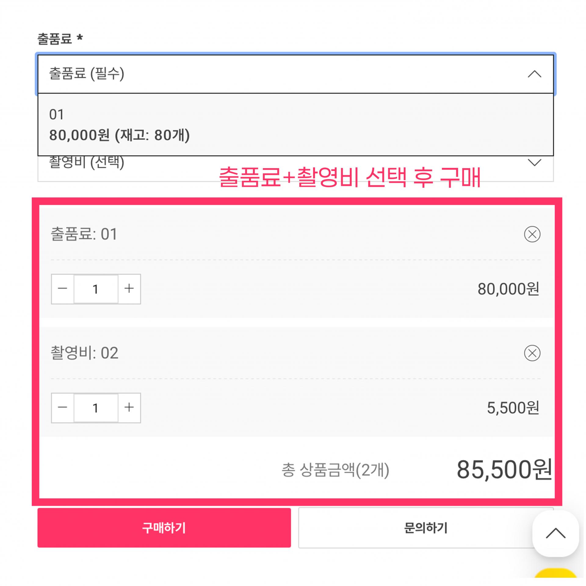 3)출품료 + 촬영비 선택 확인 후 구매하기 버튼 클릭