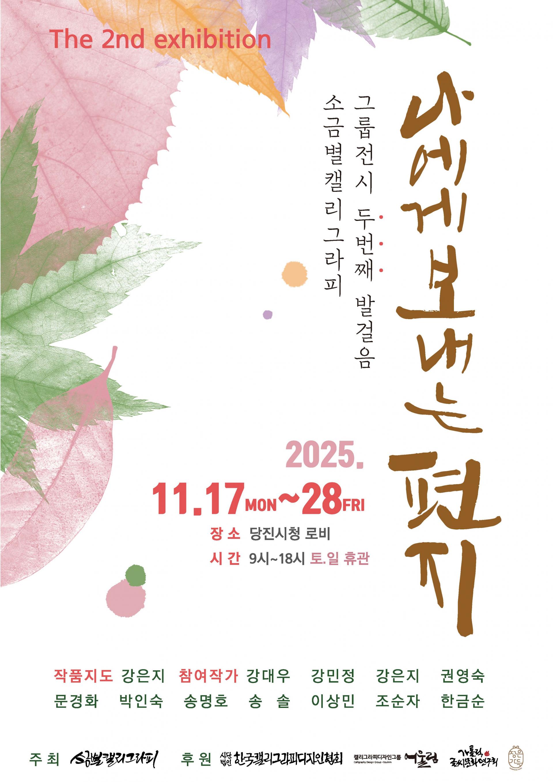 후원 (사)한국캘리그라피디자인협회, 캘리그라피디자인그룹 어(語)울림, 가톨릭글씨문화연구회, 정은가득